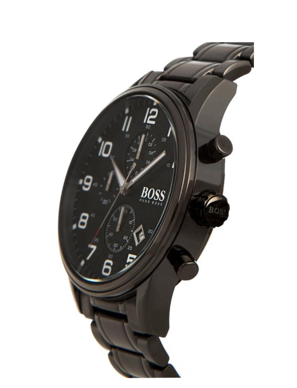 Hugo Boss HB 1513180 is an amazing and handsome Gents watch. The case is made out of stainless steel while the dial colour is black with white number markers. The features of the watch include a chronograph and date function.