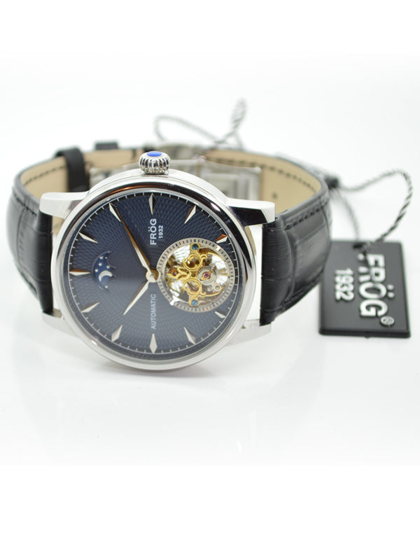 The HELIOS is a modern classic. This new model has an open heart on the dial and a see through case back to expose the automatic movement and moving parts. The sun and moon sub dial shows night and day. This perfectly balanced vintage style watch with its sleek lines and gentle curves has a full stainless steel case, mineral glass. Fitted with a luxury leather strap and polished steel deployment clasp. This timepiece is water resistant to 30 metres.